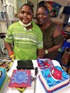 Lowell Thomas and his mother, Malika, celebrate Lowell’s 11th birthday Oct. 30 in the Congenital Heart Center at UF Health Shands Hospital. Lowell, a native of St. Croix, U.S. Virgin Islands, was diagnosed with a fatal heart condition in August while he and Mallika were on vacation in Jacksonville.