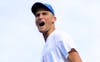 UF tennis' Henry Jefferson celebrates during his head-to-head match against South Florida's Ettore Danesi. Their match was the only one on Saturday to go to three sets, with Jefferson sealing the Gators’ victory over the Bulls Jan. 17