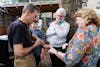 Sunrise Wildlife Rehabilitation director Joe Soistman holds Kernel, a corn snake, while Stacy Richards pets the snake at the Florida Master Naturalist Program’s 25-year anniversary celebration in Gainesville, Fla., Saturday, Jan. 17, 2026.