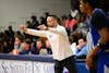 Santa Fe College head coach John Ritzdorf coaches his team during an NJCAA men's basketball game against Miami Dade College in Gainesville, Fla., Saturday, Jan. 19, 2026.