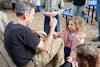 Sunrise Wildlife Rehabilitation director Joe Soistman holds Kernel, a corn snake, while Vanessa pets the snake at the Florida Master Naturalist Program’s 25-year anniversary celebration in Gainesville, Fla., Saturday, Jan. 17, 2026.