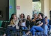 Alachua County residents watch the school board meeting outside the Alachua County Public Schools District Office after the boardroom reaches full capacity, Thursday, March 12, 2026 in Gainesville, Fla.