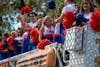 Parade floats travel across University Avenue during the Homecoming Parade in Gainesville on Friday, Oct. 17, 2025.