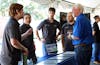 Chris Malachowsky, co-founder of computer graphics company Nvidia, speaks with students about their engineering projects during the unveiling ceremony of the fourth generation of HiPerGator, the most powerful university-owned supercomputer in the U.S., at UF East Campus on Tuesday, Oct. 14, 2025.