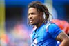 Florida Gators wide receiver Dallas Wilson (6) during warmups before a football game between the South Florida Bulls and the Florida Gators on Sept. 6, 2025, at Ben Hill Griffin Stadium in Gainesville, Fla.