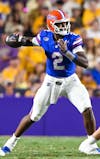 Florida Gators quarterback DJ Lagway (2) throws the ball during a football game between the Louisiana State Tigers and the Florida Gators on Saturday, Sept. 13th, 2025, at Tiger Stadium in Baton Rouge, La.