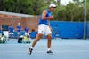 Florida tennis player Andreas Timini swings at the ball during an NCAA tennis match against Vanderbilt, Thursday, April 2, 2026, in Gainesville, Fla.