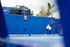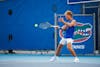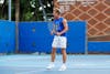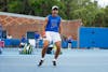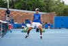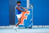 Florida tennis player Adhithya Ganesan returns a serve during an NCAA tennis match against Vanderbilt, Thursday, April 2, 2026, in Gainesville, Fla.