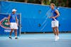 Florida tennis players Kevin Edengren and Andreas Timini celebrate winning a point during an NCAA tennis match against Vanderbilt, Thursday, April 2, 2026, in Gainesville, Fla.