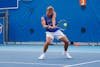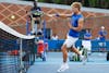 Florida tennis player Kevin Edengren hits the ball during an NCAA tennis match against Vanderbilt, Thursday, April 2, 2026, in Gainesville, Fla.