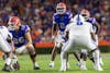 Florida Gators quarterback DJ Lagway (2) stiff arms a defender during the second half half at Steve Spurrier-Florida Field at Ben Hill Griffin Stadium on Saturday, October 05, 2024.
