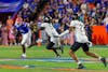 Florida Gators running back Montrell Johnson Jr. (1) breaks a tackle during the first half at Steve Spurrier-Florida Field at Ben Hill Griffin Stadium on Saturday, October 05, 2024.