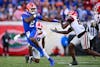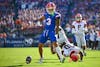 Florida quarterback DJ Lagway (2) throws a stiff arm during a NCAA college football game, Saturday, Nov. 1, 2025, in Jacksonville, Fla.