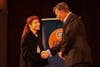 Britt Lower (from the Apple TV Show Severance) speaks at the University of Florida's auditorium.