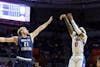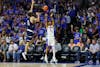 Florida Gators guard Xaivian Lee (1) takes a three pointer during the second half of a NCAA college basketball game against North Florida, Thursday, Nov. 06, 2025, in Gainesville, Fla.