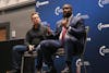 Conservative political commentator Benny Johnson listens as U.S. representative Byron Donalds speaks at the Leading the Next Generation event sponsored by the University of Florida Turning Point USA chapter at the Reitz Union Ballroom Thursday, Nov. 13, 2025.