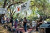 Bands perform at a No Kings Rally in Cora Robertson Park, Saturday, March 28, 2026, in Gainesville, Fla.