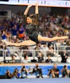 Florida gymnast Gabby Disidore performs on the floor during the NCAA gymnastics National Championship against Oklahoma, LSU and Minnesota, Saturday, April 18, 2026, in Fort Worth, Texas.