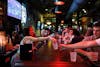 A bartender hands a drink to a patron at Whoopi's, Friday, March 6, 2026, in Gainesville, Fla.