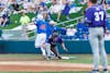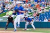 Florida Gators infielder Colton Schwarz beats the ball to first base during an NCAA Baseball game against High Point, Saturday, March 7, 2026, in Gainesville, Fla.