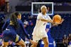 Florida guard Liv McGill (23) dribbles during a NCAA college basketball game against Chattanooga, Thursday, Nov. 06, 2025, in Gainesville, Fla.