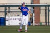 Florida outfielder Blake Cyr (5) throws the ball during an NCAA college baseball game against Auburn at Condron Family Ballpark in Gainesville, Fla., Friday, April 17, 2026.
