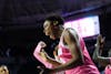 Florida center Gift Ezekiel (21) celebrates during the second half of an NCAA basketball game against Auburn, Thursday, Feb. 5, 2026, in Gainesville, Fla.