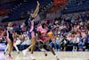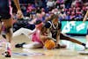 Florida guard Liv McGill (23) fights for the ball during the first half of an NCAA basketball game against Auburn, Thursday, Feb. 5, 2026, in Gainesville, Fla.