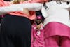 Florida guard Alexia Dizeko (9) stands in a team huddle after the Gators defeated Auburn 61-53, Thursday, Feb. 5, 2026, in Gainesville, Fla.