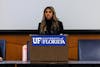 University of Florida student government senate president Maya Idiculla speaks during a student senate meeting, Tuesday, Feb. 3, 2026, in Gainesville, Fla.