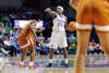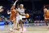 Florida guard Liv McGill (23) defends during the second half of an NCAA basketball game against Texas, Thursday, Jan. 29, 2026, in Gainesville, Fla.