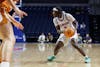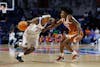 Florida guard Alexia Dizeko (9) dribbles during the first half of an NCAA basketball game against Texas, Thursday, Jan. 29, 2026, in Gainesville, Fla.