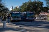 The number 33 bus stops at the Hub Food Court in Gainesville, Fla., Friday, Jan 16, 2026.