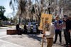The Young Democratic Socialists of America gather with signs at Turlington Plaza in Gainesville, Fla. Friday, Jan 30, 2026.