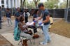 Lilliana Wells gets a blood pressure test from an H4H volunteer outside Gainesville City Hall, Sunday, March 29, 2026, in Gainesville, Fla.