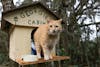 Georgie, stands on a cabin that was built for her at the Gainesville-Hawthorne State Park Trail in Gainesville, Fla., Wednesday, Jan. 14, 2026.