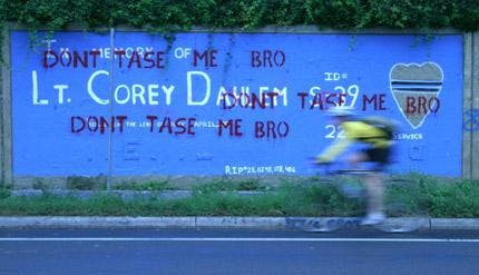 To the individuals who defaced the memorial to Lt. Corey Dahlem on the 34th Street Wall: Regardless about what you may believe about UPD's actions, you have crossed the line. By tagging the now infamous "Don't Tase me, bro!" over a memorial to a dedicated and upstanding officer, you covered up the most visible mark of an officer who exemplified how to protect and serve.