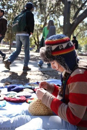 A roll of cash flowed through UF Thursday when three employees from the local sushi restaurant Rolls 'n Bowls handed out about $500 around various spots on campus.