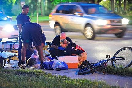 An unidentified 21-year-old male cyclist was taken to the hospital after being hit by a car on Thursday night.
