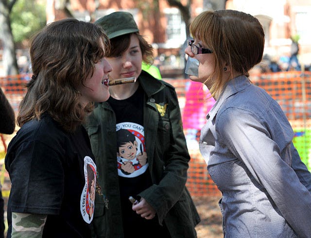 About 300 people traded in their rights to free speech for free food in an event hosted by the Society of Professional Journalists.