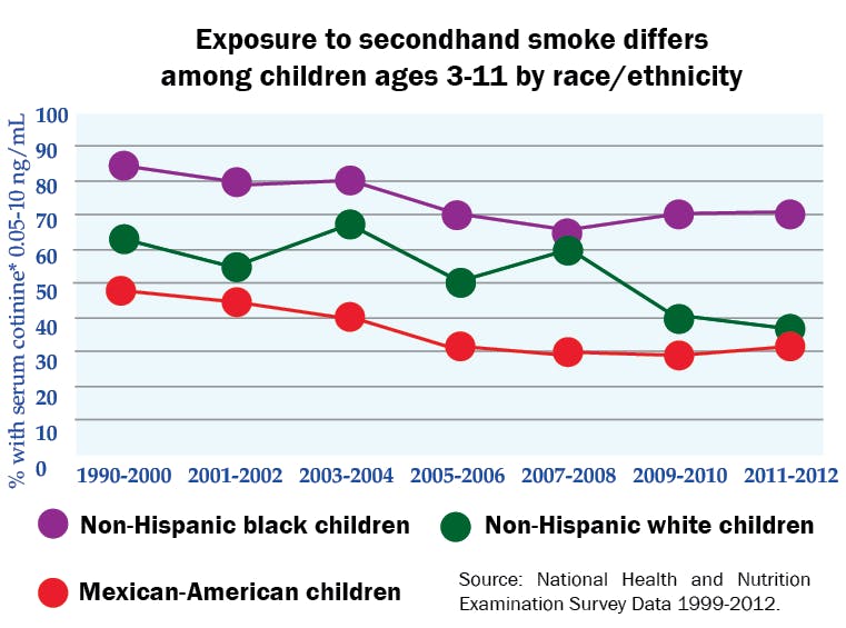 Secondhand smoke exposure in the U.S. dropped by more than half from 1999 to 2012, according to a report by the Centers for Disease Control and Prevention,