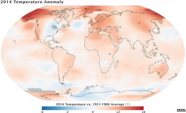 The average global temperature in 2014 was the highest it’s been since records started in 1880 while Florida’s overall temperature dipped down.