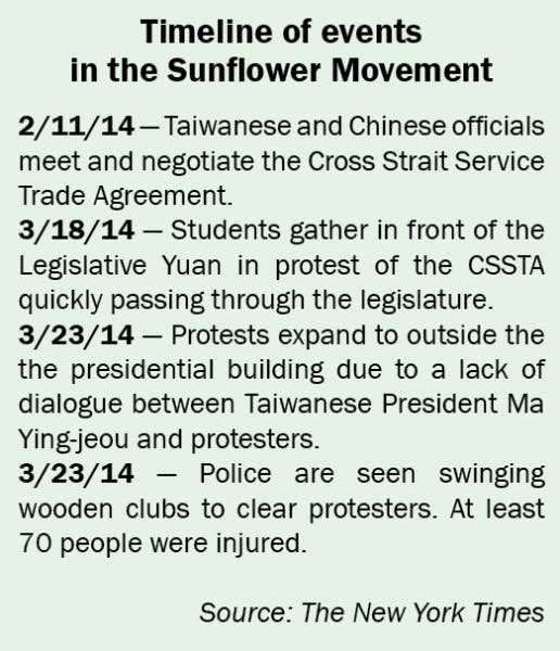 Protests in Taiwan have hit the two-week mark, and some Taiwanese students at UF are standing in solidarity with protesters overseas.