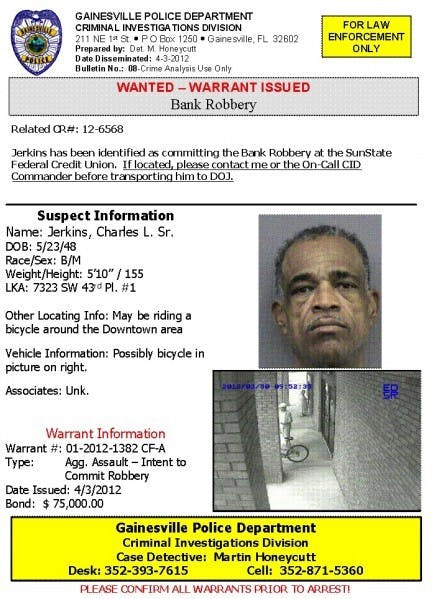 A man believed to be in his mid-60s tried to rob a bank Friday morning, and Gainesville Police are still looking for him.