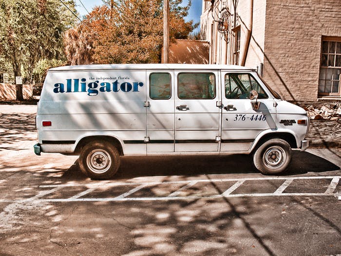 The Independent Florida Alligator's newspaper delivery van was stolen from a parking lot behind the Alligator's news office at about 11:15 p.m. Monday.