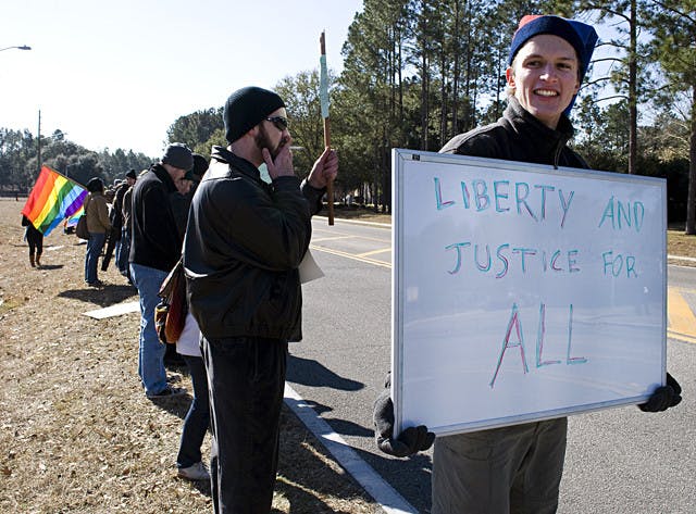 Gainesville’s Queer Activist Coalition, Stand Up Florida and several advocacy organizations spoke out against the church’s stance against homosexuality Sunday morning.