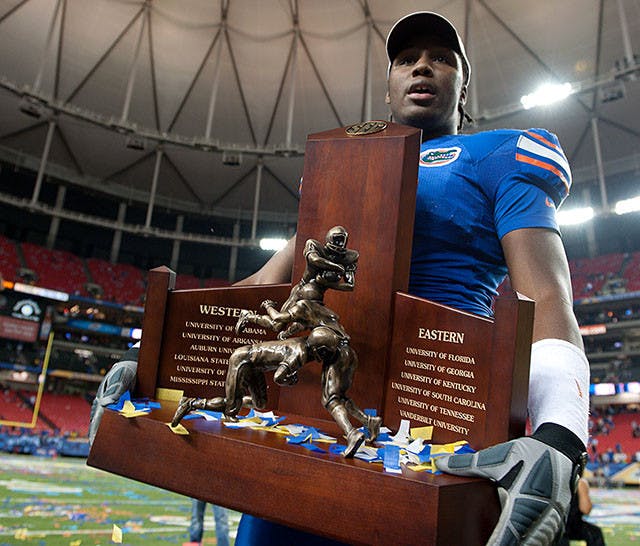 Gators football coach Urban Meyer announced Tuesday that starter Carlos Dunlap will not play in Saturday’s Southeastern Conference championship game after he was arrested for DUI early Tuesday morning.