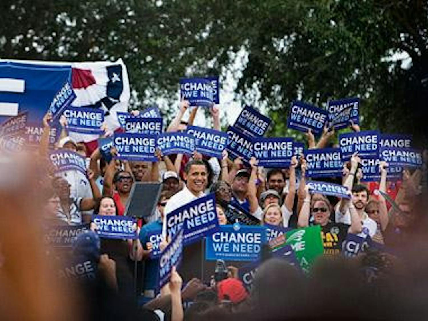 At a rally in Jacksonville on Saturday, Democratic presidential nominee Barack Obama took aim at investment bankers, insurance companies and high-salaried citizens, declaring they could spare some change.