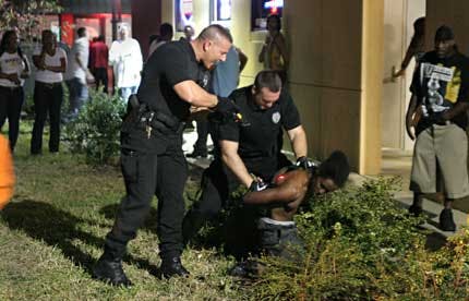 As fists flew and bodies lunged downtown Thursday night, Gainesville Police Department officer Courtnay Roberts aimed his Taser for the first time.