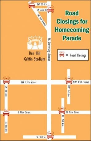 Large portions of University Avenue will be closed today for Gator Gallop and the Homecoming parade.